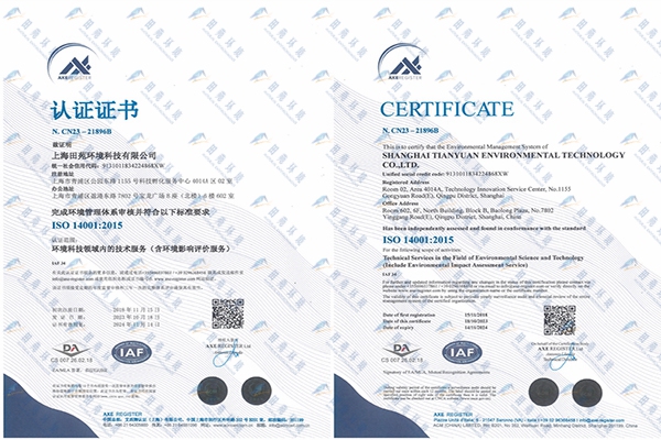 《ISO14001環(huán)境管理體系認證證書》